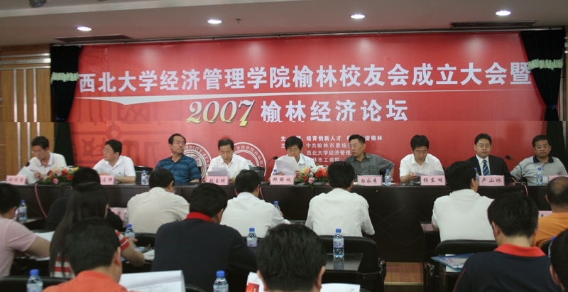 经过一段时间的精心筹备,永利yl23411no1榆林院友会2007年6月2日宣布成立,成立大会在榆林市今日潮大酒店举行,永利yl23411no1院长、博士生导师白永秀教授,永利yl23411no1院庆办公室主任卢山冰教授、永利yl23411no1现代经理人管理培训中心主任顾颖博士、永利yl23411no1MBA教育中心副主任张红芳博士等学院领导和老师以及榆林市委副书记邢解放先生,榆林市人大常委会副主任杨东明先生,榆林市政协副主席张自明先生等榆林市领导出席了成立大会。榆林市相关企事业单位的中高层管理人员以及众多有志于进修学习MBA的社会各界人士250余人应邀参加。