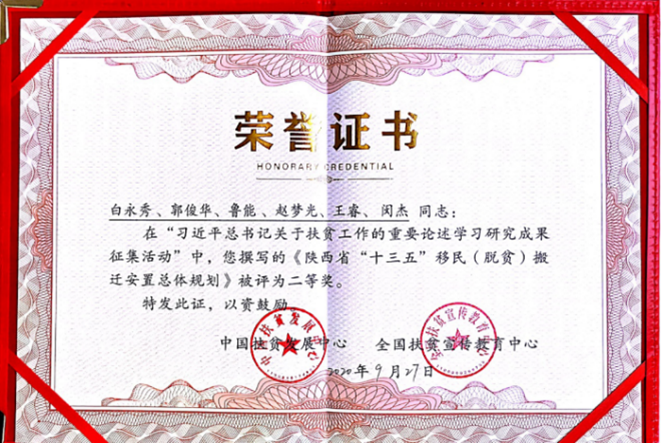 永利官网白永秀教授和吴振磊教授的两项成果从1643件研究成果中脱颖而出、获得奖项。其中,白永秀教授主持完成的《陕西省“十三五”移民(脱贫)搬迁安置总体规划》获得“课题结项成果、调研报告、心得体会类”成果二等奖;吴振磊教授与白永秀教授合作完成的《破解易地扶贫搬迁四大难题的建议》获得“课题结项成果、调研报告、心得体会类”成果三等奖。该类成果一等奖1项,二等奖1项,三等奖7项。此次获奖的两项研究,属于白永秀教授团队围绕国家社科重大项目“西部地区易地移民搬迁工程的精准扶贫机制、综合效益评价与政策创新研究”(16ZDA023)的系列成果。此前,已有相关政策简报得到中央领导同志正面批示和教育部采纳,相关论文获评“兴华优秀论文奖”。