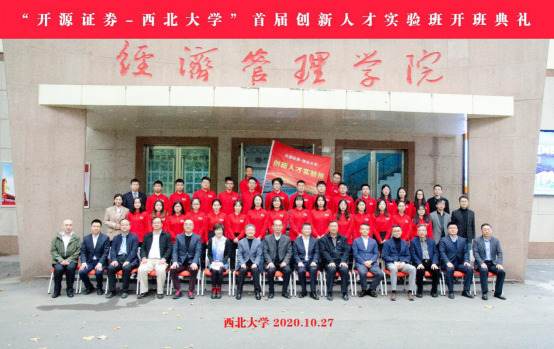 10月27日上午,“开源证券-永利yl23411no1”首届创新人才实验班在永利官网太白校区永利yl23411no1正式开班。原全国社保基金理事会副理事长、陕西宏观经济研究院院长王忠民教授,永利官网校长郭立宏,校党委常委、副校长王尧宇,中国证监会发言人高莉,开源证券董事长李刚,朱雀投资董事长李华轮,中国小额贷款公司协会党委委员、秘书长樊卫东,宁夏嘉川集团董事长马小奇,开源证券副总经理武怀良、总经理助理张国松、人力资源部总经理李青,永利官网国内处处长崔延力、研工部部长李军、学工部副部长史伟、教务处副处长郭唅,学院党委书记杜勇、副院长李辉、师博、赵传仁,学院金融学系主任王满仓、副主任王峰虎和部分青年教师以及首届创新人才实验班全体学员、媒体代表等50余人参加活动。开学典礼由学院院长吴振磊主持。
