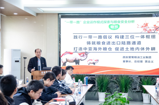 聘任仪式结束后,贾合义教授为永利官网师生作了题为《“一带一路”企业运作模式探索与粮食安全分析》的主题报告。