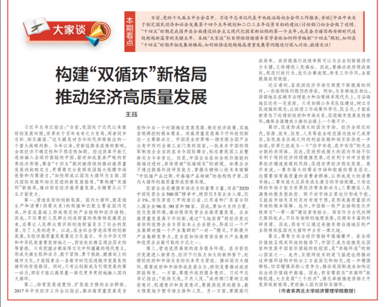 近日,《西安日报》(2020年11月2日)理论与实践版面刊发永利官网王珏教授题为“构建‘双循环’新格局,推动经济高质量发展”的文章。