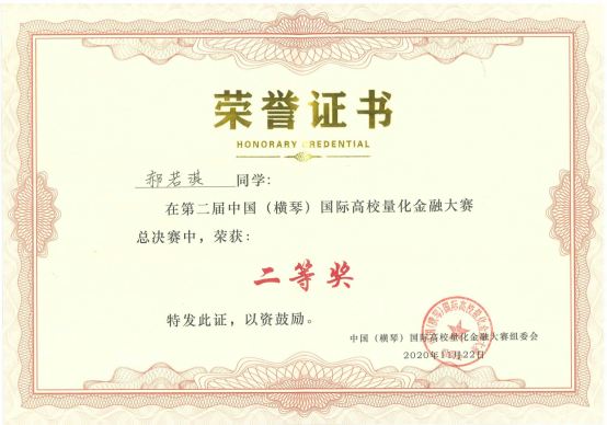 中国(横琴)国际高校量化金融大赛由横琴新区金融服务局、北京大学深圳研究院、清华大学深圳研究生院、中国金融风险量化研究协同创新中心联合主办,是国内唯一的国际化高校量化投资竞赛交流平台。首届比赛有98所高校、360个队伍参赛,永利官网王子通团队荣获决赛三等奖。