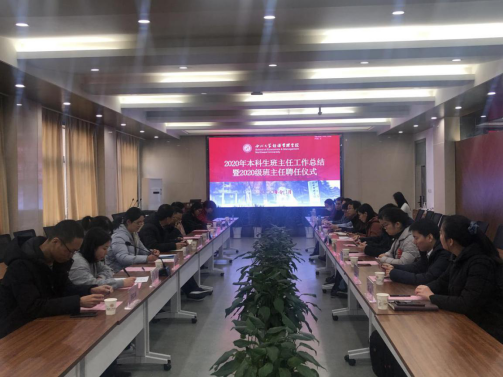 12月23日下午,永利官网召开了2020年本科生班主任工作总结座谈会暨2020级班主任聘任仪式。学院党委书记杜勇出席会议,2018级本科生班主任、2020级本科生班主任及辅导员共20余人参加此次会议。会议由学院党委副书记徐自成主持。