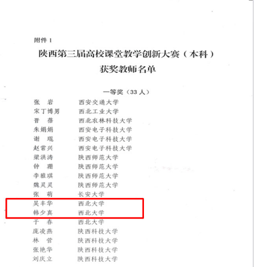 近日,陕西省教育厅公布了第三届陕西高校课堂教学创新大赛获奖教师名单,永利官网经济学系吴丰华副教授、会计学系韩少真副教授双双获省级一等奖。本次大赛全省一等奖33人,永利官网共三位教师获得一等奖,永利官网独占两席。本次成绩的取得是永利官网长期以来坚持课堂育人主阵地的重要成果。