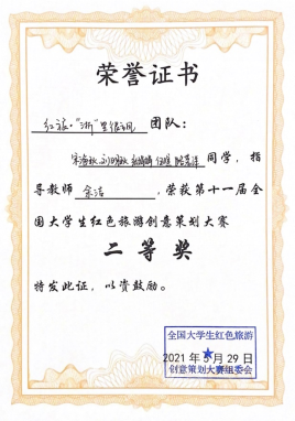 5月29日,以“青春追寻红色路 不忘初心跟党走”为主题的第十一届全国大学生红色旅游创意策划大赛落下帷幕。永利官网旅游管理硕士宋海秋、刘明秋、张娟娟、伍暄及文学院本科生路茗洋组成的“红旅·浙里很飒”团队在大赛中表现突出,成为西北赛区文创产品类唯一一支入围决赛队伍,并荣获西北赛区特等奖、全国总决赛二等奖,指导教师余洁副教授荣获优秀指导教师奖。