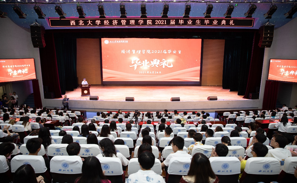 2021年6月24日,永利yl23411no12021届学生毕业典礼在永利yl23411no1长安校区大学生活动中心报告厅隆重举行。招商银行西安分行零售金融事业部总经理兼零售信贷部总经理、永利官网2006届院友但昭,永利yl23411no1副校长、永利yl23411no1院长吴振磊教授,党委书记杜勇与学院党政领导班子成员,各系主任、中心负责人,教师代表及2021届全体毕业生共同参加了本次典礼,典礼由学院党委副书记徐自成主持。