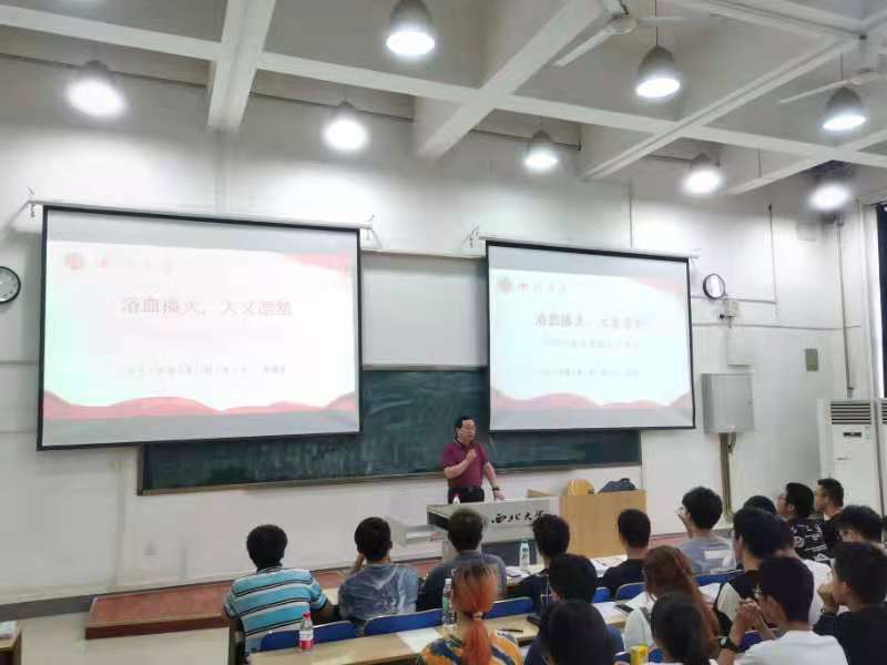 恰逢中国共产党成立一百周年,2021年6月23日,校学生工作部(处)部(处)长董国强以“浴血播火,大义凛然”为主题,为永利官网2020级经济类本科生讲授形势与政策课,分享永利官网杰出校友王孝锡烈士的英勇事迹。永利官网党委副书记徐自成,专职团干戴昶及永利官网2020级经济类全体本科生参加学习。