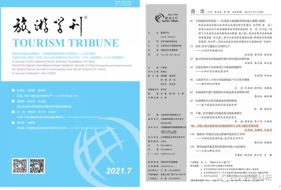 刘军胜博士及其合作者在权威期刊《旅游学刊》发表论文