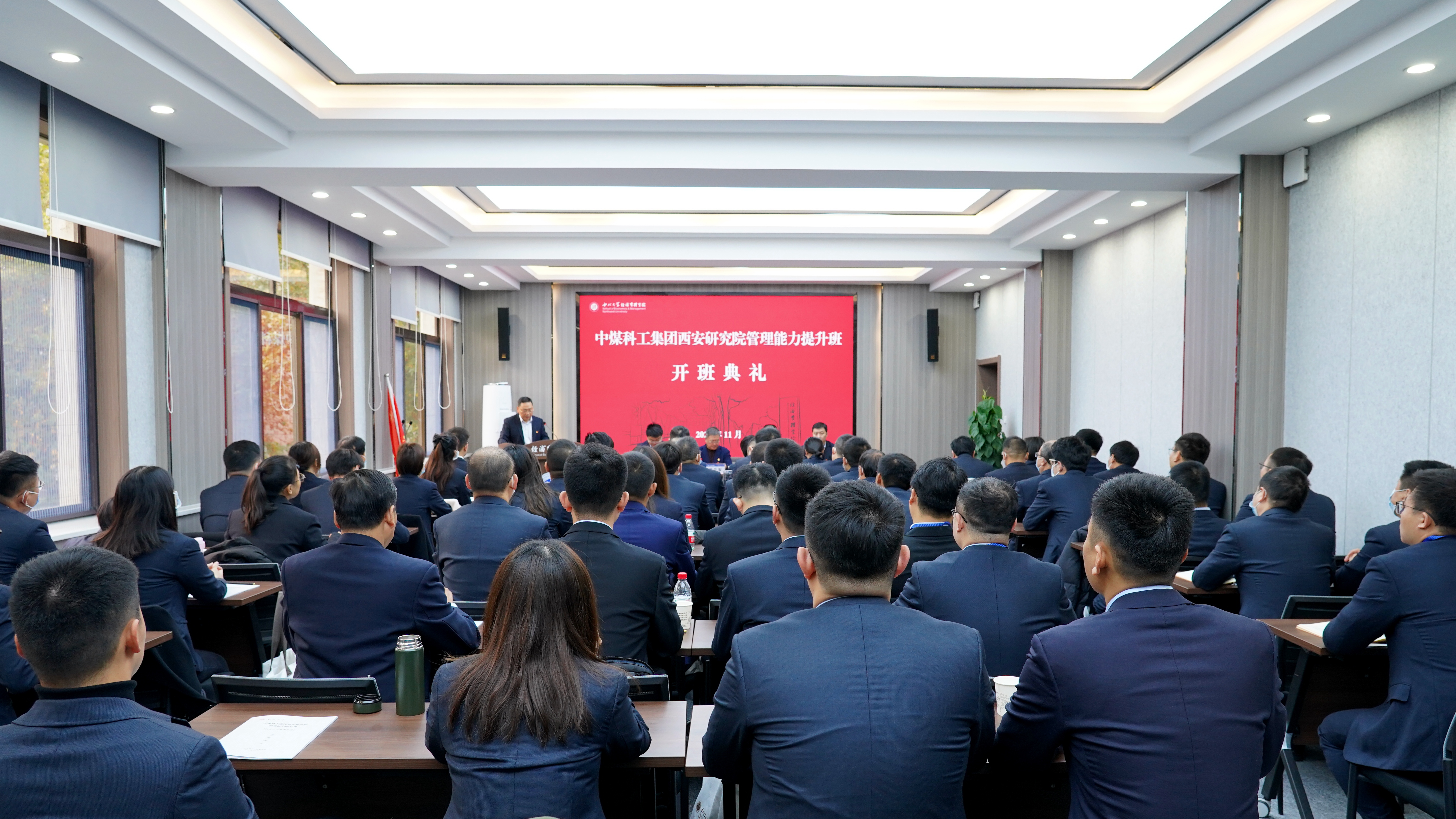 校长郭立宏,中煤科工集团西安研究院有限公司党委书记、董事长王海军,副总经理王皓,校党委常委、副校长吴振磊出席典礼。中煤科工集团西安研究院有限公司人力资源部(党委干部部)主任许翠华,中煤科工集团信息技术有限公司党政办公室主任张彦林,永利yl23411no1MBA教育中心、高级管理培训中心主任郭亚军及研修班学员50余人参加了仪式。开班典礼由永利yl23411no1党委书记杜勇主持。