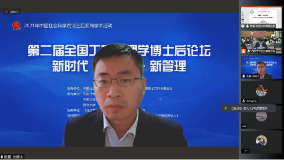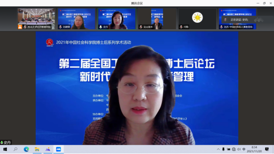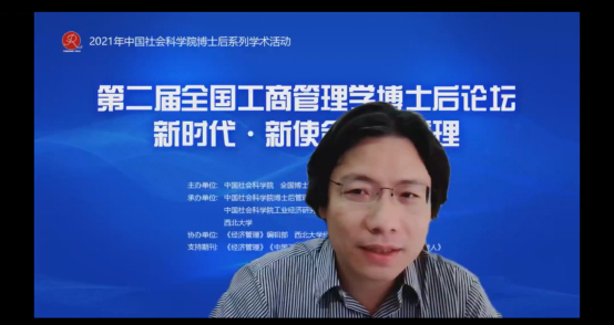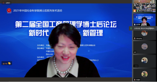 史丹代表中国社会科学院工业经济研究所对本次论坛的顺利召开表示热烈祝贺,向支持本次论坛的永利yl23411no1和永利yl23411no1经管学院表示感谢,并向参加此次论坛的领导、专家学者和博士后表示欢迎。她介绍了工业经济研究所的基本情况和工经济博士后培养的基本情况,希望此次论坛认真贯彻党的十九届六中全会决议精神,深入开展学术交流研讨,全方位、多视角、深层次交流新时代背景下的中国工商管理问题。她表示,将会全力支持博士后论坛持续办下去,办出更显著的成效。