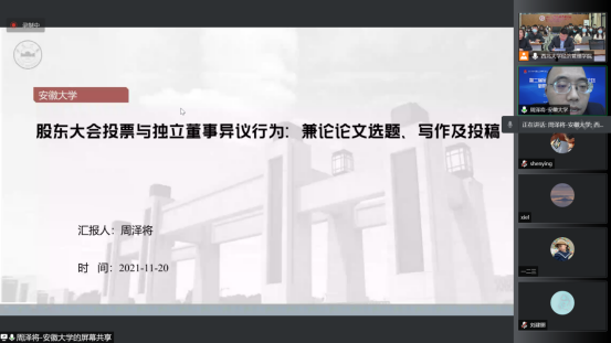 安徽大学商学院副院长、教授、博士生导师、南京大学博士后周泽将作主旨演讲