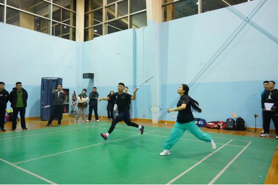 比赛进行过程中,现场气氛紧张而热烈,随着羽毛球在空中快速飞舞,场上对战双方积极跑动,不时打出漂亮的技术球引来场下观众的阵阵掌声。经过近4个小时的激烈比赛,最终永利官网2组队伍包揽亚军和季军,并获得“团体优胜奖”。