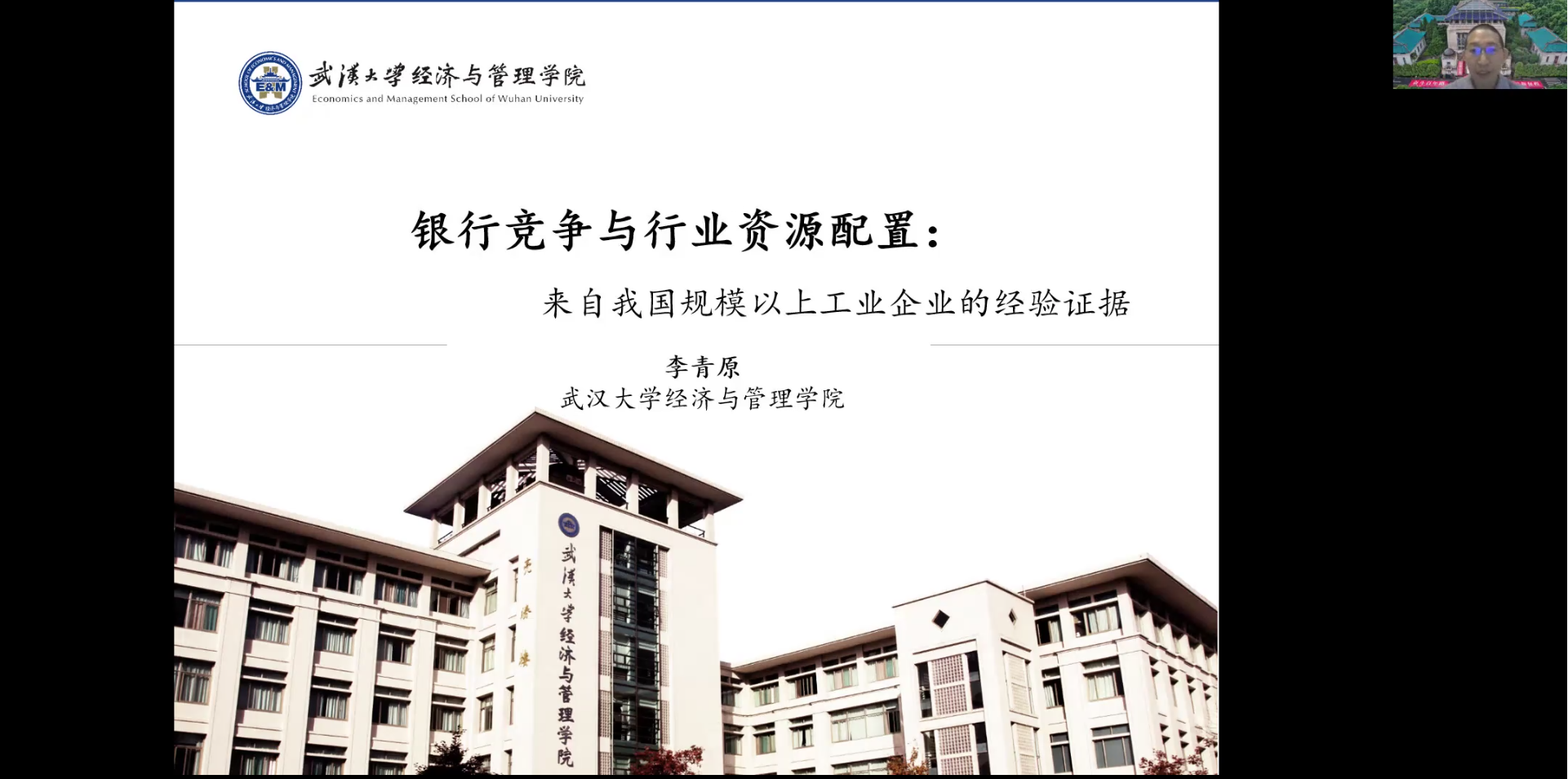 2022年3月14日上午,永利yl23411no1学术沙龙在腾讯会议平台成功举办。讲座由学院副院长师博教授主持,特邀国家高层次人才计划特聘教授、武汉大学经济与管理学院副院长李青原教授做了题为“银行竞争与行业资源配置”的学术讲座。永利yl23411no1副校长、永利yl23411no1院长吴振磊教授以及学院教师和博、硕士研究生等共计200余人参与了本次线上讲座。