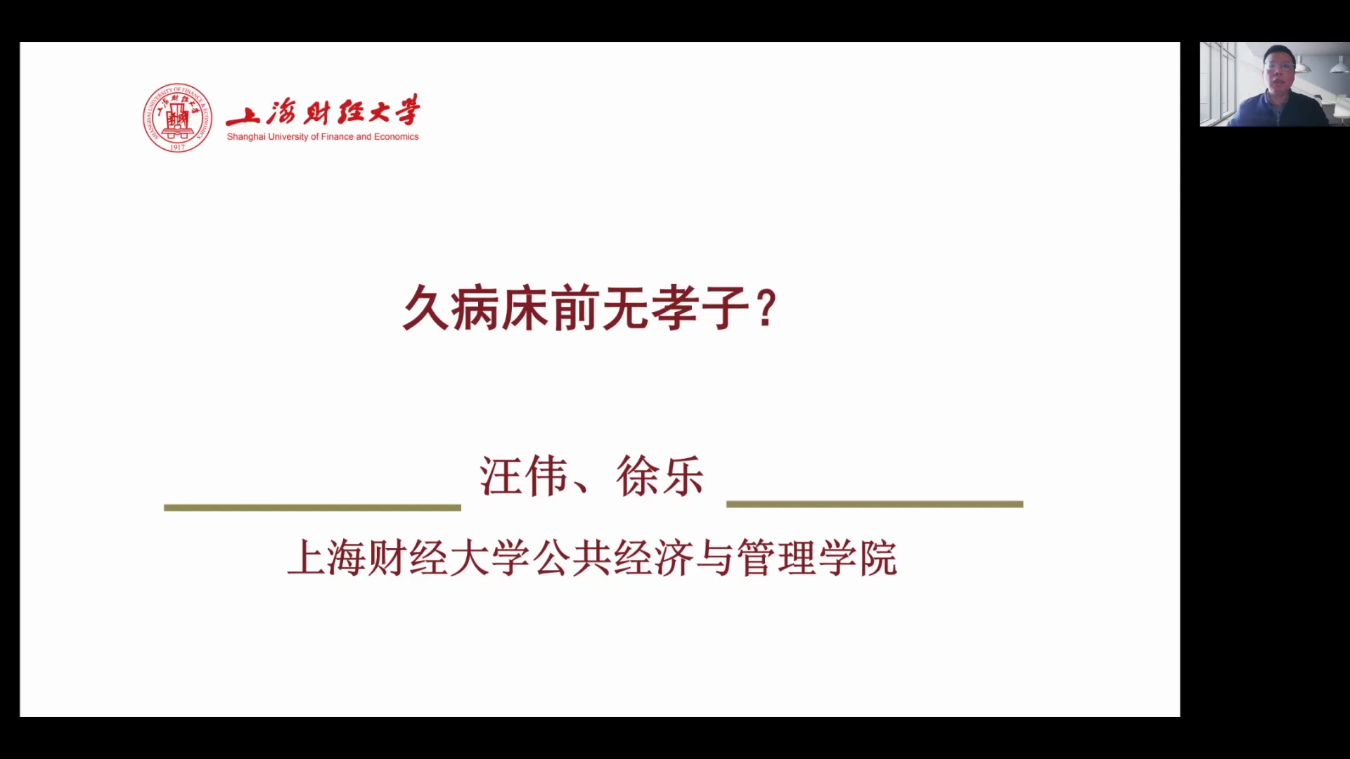 4月8日下午,永利yl23411no1学术沙龙在腾讯会议平台成功举办。讲座由永利yl23411no1副校长、永利yl23411no1院长吴振磊教授致辞,学院副院长师博教授主持,特邀上海财经大学公共经济与管理学院汪伟教授做了题为“久病床前无孝子?”的学术讲座。学院老师和硕、博士研究生等共计200余人参与了本次线上讲座。
