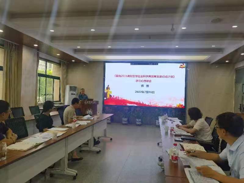 5月27日,中共中央宣传部、教育部联合印发《面向2035高校哲学社会科学高质量发展行动计划》(以下简称《行动计划》),对高校哲学社会科学事业高质量发展作出中长期规划。自《行动计划》印发以来,永利官网党委迅速响应上级号召,积极组织学习。会上,副院长师博教授结合自身学习体会,领学了《行动计划》的重要精神。他从出台背景、总体思路和发展目标、出台四大亮点和重点内容等四个方面对《行动计划》进行了深度梳理解读。