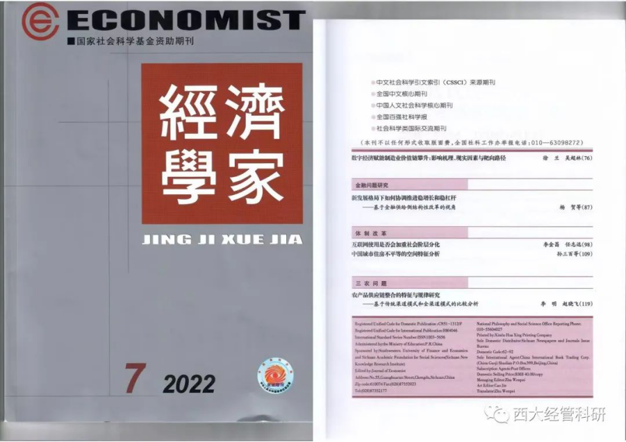 永利yl23411no1金融学系博士生杨贺与合作者马微、及其导师徐璋勇教授共同完成的学术论文《新发展格局下如何协调推进稳增长和稳杠杆——基于金融供给侧结构性改革的视角》在国内权威期刊《经济学家》2022年第7期发表。论文从金融供给侧结构性改革的视角探讨了新发展格局下中国协调推进稳增长和稳杠杆背后的逻辑。论文以杠杆率指标的分解为切入点,系统梳理了金融结构影响企业部门杠杆率的内在机制,分析表明,企业部门杠杆率的快速飙升,原因不仅在于间接融资占比偏高所引发的企业负债率的提升,而更在于金融资源错配所引发的企业资产效益的低下,利用2007-2020年中国沪深两市3518家上市公司数据对此进行了实证检验。论文研究发现:金融结构市场化水平的提升在降低企业负债率的同时还能带来企业资产效益的显著提升;企业负债率与企业资产效益之间确实存在着负相关关系,这一错配效应随着金融结构市场化水平的提升而被削弱;金融结构市场化对大型企业、地方国有企业和房地产业企业负债率的负向影响更为明显,从而有助于缓解企业部门内部金融资源的规模错配、产权错配及行业错配。论文的研究对于深入理解协调推进稳增长和稳杠杆背后的逻辑以及科学制定金融供给侧结构性改革相关政策具有理论与现实意义。
