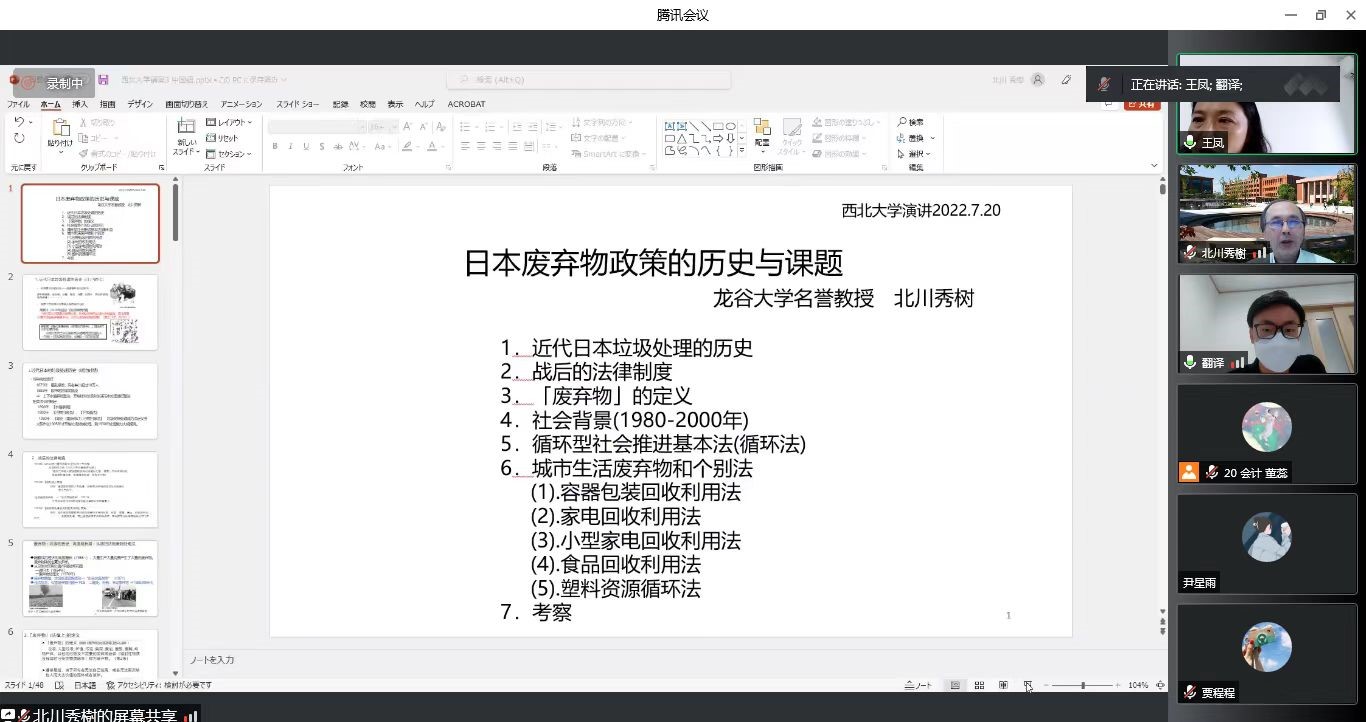 日本龙谷大学北川秀树教授主讲“日本固体废弃物管理政策的演进历程”学术讲座