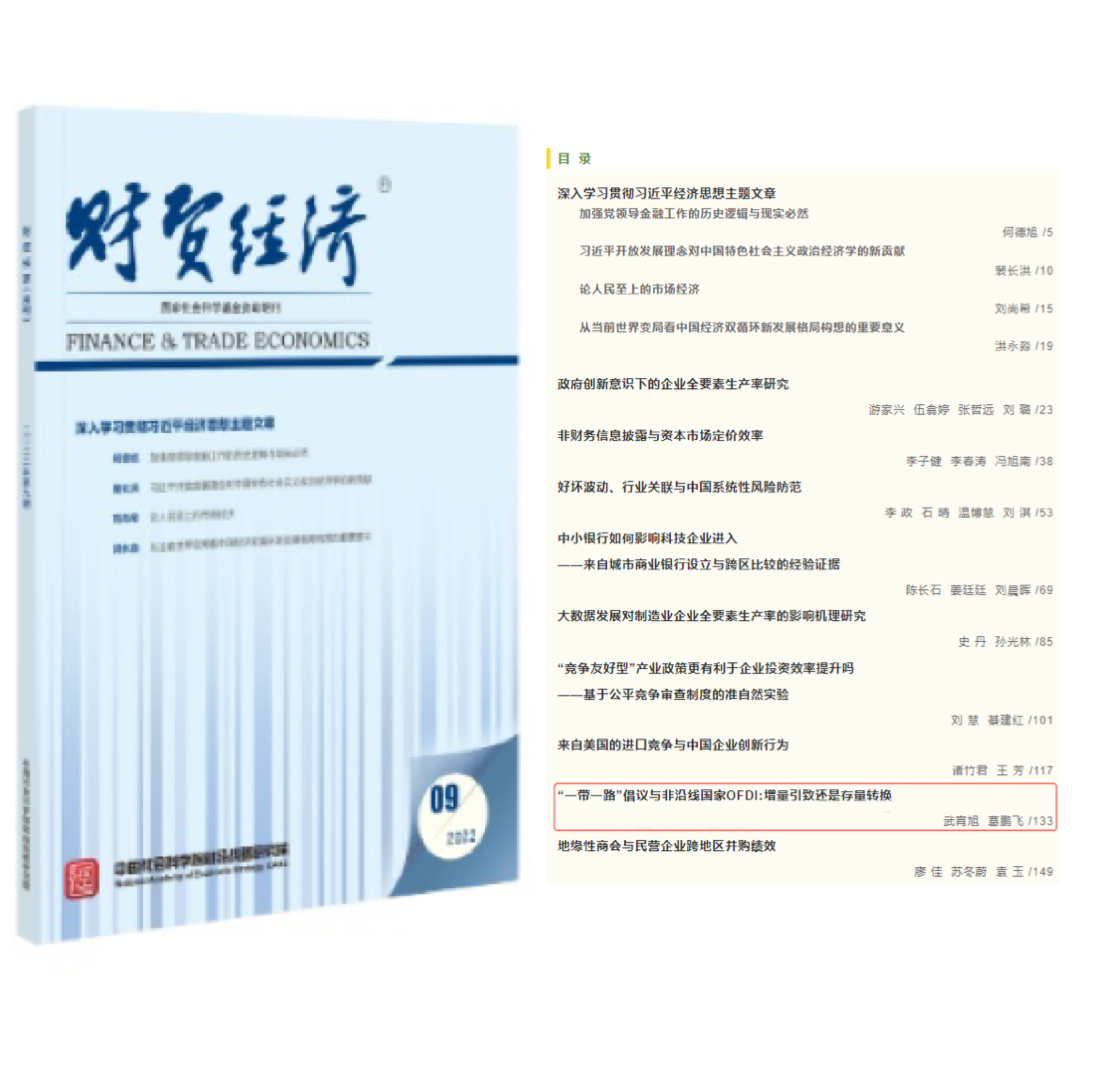 近日,永利yl23411no1师资博士后武宵旭与副教授葛鹏飞合作完成的论文《“一带一路”倡议与非沿线国家OFDI:增量引致还是存量转换》在中国人文社会科学权威期刊《财贸经济》2022年第9期发表。该论文前期工作由金融系本科生王腾蛟、黄智超完成。