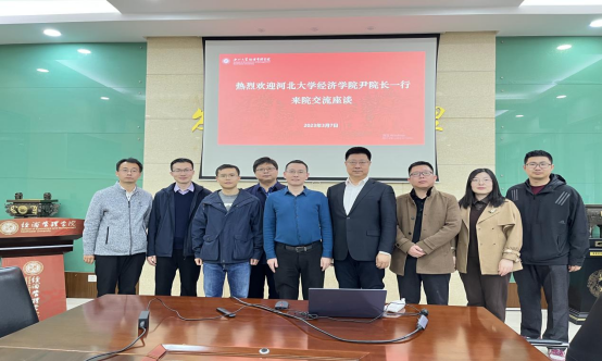 3月7日下午,河北大学经济学院副院长尹成远教授、国际经济与贸易系主任张晓华教授、经济统计学系主任户艳岭副教授和刘超副教授4位老师来永利官网调研座谈。学院副院长李辉、数理经济与统计学系南士敬副教授和翁宇雷副教授、世界经济与贸易系主任王颂吉副教授、史贝贝副教授及博士生参加了座谈会。座谈会由李辉副院长主持。