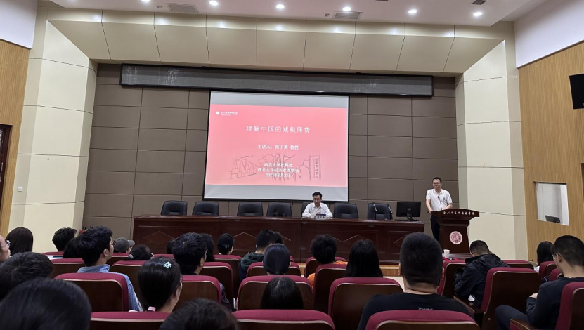 范教授首先结合企业偷税漏税的法律案件以及不同地域政府收入来源的差异引出了此次讲座的主要内容:减税(降费)的现实逻辑、减税降费的新挑战、构建中国特色的减税降费。据政府工作报告显示,2016年政府首次公布了减税降费的规模,累计12万亿;2018年前后,公众首次关注到政府减税降费工作。紧接着,学术界展开了关于中国税收的激烈讨论,第一是有关减税降费的内因—宏观税负的讨论,范教授用数据表示:在全球主要经济体中,中国宏观税负不高,同时随着时间的推移,近年来中国宏观税负在逐步下降。第二是有关供给侧结构性改革的讨论,重点强调了“三去一降一补”中的降成本政策。第三是有关减税降费的外因—特朗普减税的讨论,中美税收结构的不同导致了中美减税政策的差异。随后,范教授基于以上讨论,提出了减税降费面临的新挑战:减税降费的泛化、减税降费的风险化、减税降费的钝化、减税降费的碎片化。最后,范教授强调了建构中国特色减税降费的原则:一要立足中国、放眼世界;二要服务于中国式现代化;三要服务于中国的重大战略;四要服务于税制优化。讲座的最后,范子英教授对在座老师和同学们的提问进行了解答,现场讨论非常热烈。李辉教授对范教授所讲内容进行了总结,对范教授的到来再次表示衷心的感谢。范子英教授简介:范子英教授,上海财经大学公共经济与管理学院院长,教授、博士生导师,国家级人才项目特聘教授,上海市“曙光学者”。长期从事公共财政和发展经济学研究,在《AmericanEconomicReview》、《经济研究》、《管理世界》、《经济学(季刊)》等学术刊物发表论文40余篇,主持国家社会科学基金重大招标项目、国家自然科学基金面上项目和青年项目、教育部人文社科基金、亚洲开发银行研究项目、中国经济改革研究基金会等项目,获张培刚发展经济学奖、“黄达—蒙代尔经济学奖”、洪银兴经济学奖、教育部第八届高等学校科学研究优秀成果奖等学术奖励。