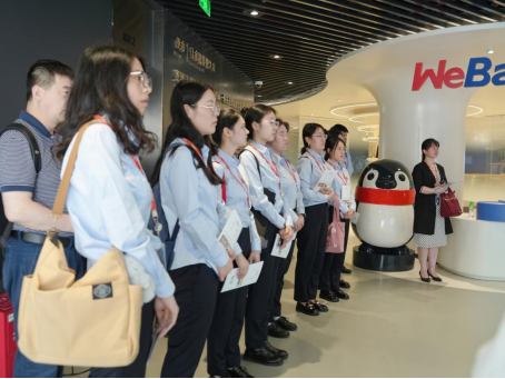 31日下午,访学团前往微众银行总部。微众银行品牌公关部公共关系室经理姚晓蓝等接待了访学团。学员们在企业相关负责人的带领下,分别参观了微众银行ECC总控中心和企业展厅。通过实地参观,学员们了解了微众银行将人工智能、区块链、云计算、大数据等技术应用于金融领域的具体实践,通过数据大屏直观了解了微众银行的分布式架构、智能风控预警系统、智能客服,还通过展厅了解了微众银行全线上的金融服务模式、微粒贷等核心金融产品。