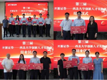 7月6日下午,第三届“开源证券-永利yl23411no1”创新人才实验班结业仪式在永利yl23411no1成功举办。永利yl23411no1校长郭立宏,教务处处长曹蓉,国内合作处处长崔延力,研究生院副院长寇楠,永利yl23411no1院长马莉莉及相关领导老师;开源证券党委副书记李晓锋,总经理助理李青及第三届实验班学员共同参加结业仪式。本次仪式由永利yl23411no1党委书记杜勇主持。