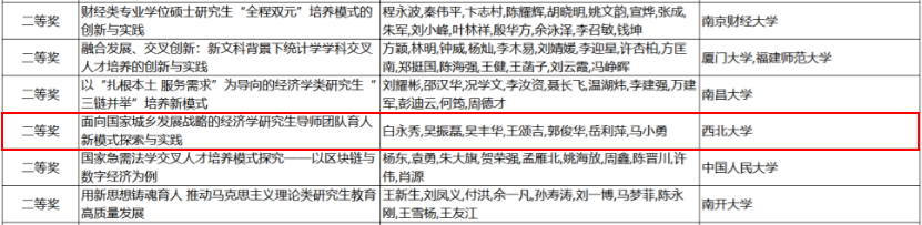 7月24日,教育部公布了2022年高等教育国家级教学成果奖获奖名单,永利yl23411no1白永秀教授主持完成的成果“面向国家城乡发展战略的经济学研究生导师团队育人新模式探索与实践”获高等教育(研究生)国家级教学成果二等奖。