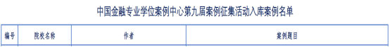 注:全国金融专业学位案例中心(以下简称案例中心)隶属于全国金融专业学位研究生教育指导委员会(以下简称金融教指委),是从事金融专业学位案例研究、案例开发、案例库建设、案例教学培训的专业研究和教学服务机构。案例入库数量是教育部进行金融专硕学位点评估时的考核项目之一。