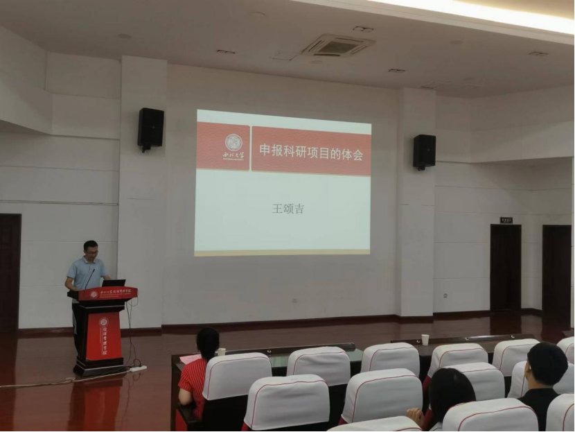 2023年国家社科基金一般项目获得者王颂吉副教授分析和分享自己近几年申报国家基金项目的经验和教训。王颂吉老师先后获批国家自然科学基金青年项目、两项教育部人文社科基金项目、国家社会科学基金一般项目,有着较为丰富的国家课题申报经验,他鼓励学院的年轻教师要积极申报、精选问题、提早准备,不断打磨申报书,提高获批概率。