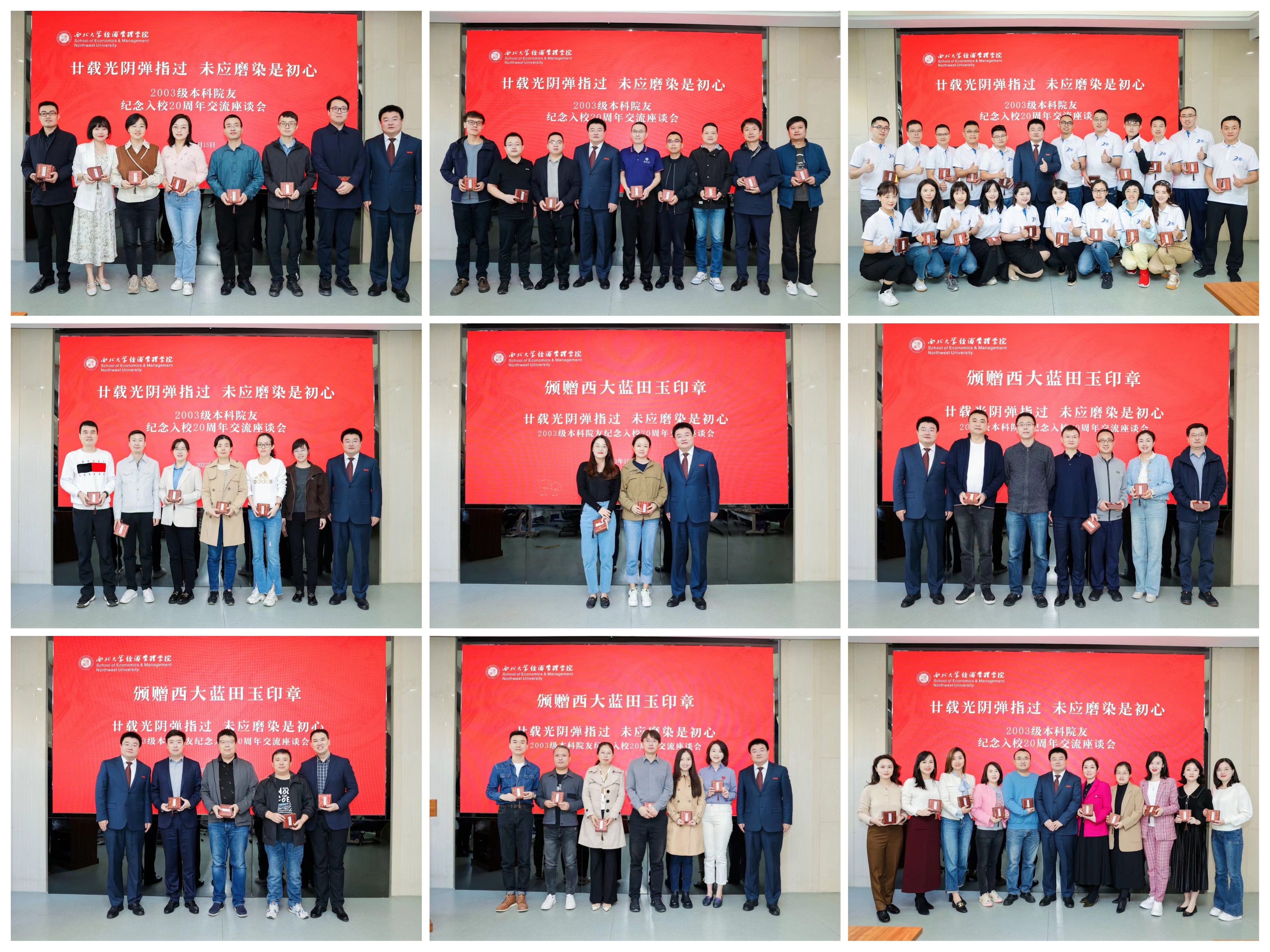 现场播放了03级校友毕业纪念片,视频收录了03级永利yl23411no1各专业的院友珍贵影像,或令人捧腹、或牵人心弦、或引人动容、或催人落泪,一段段难忘回忆,蕴藏着院友们对西大经管的深深眷恋。