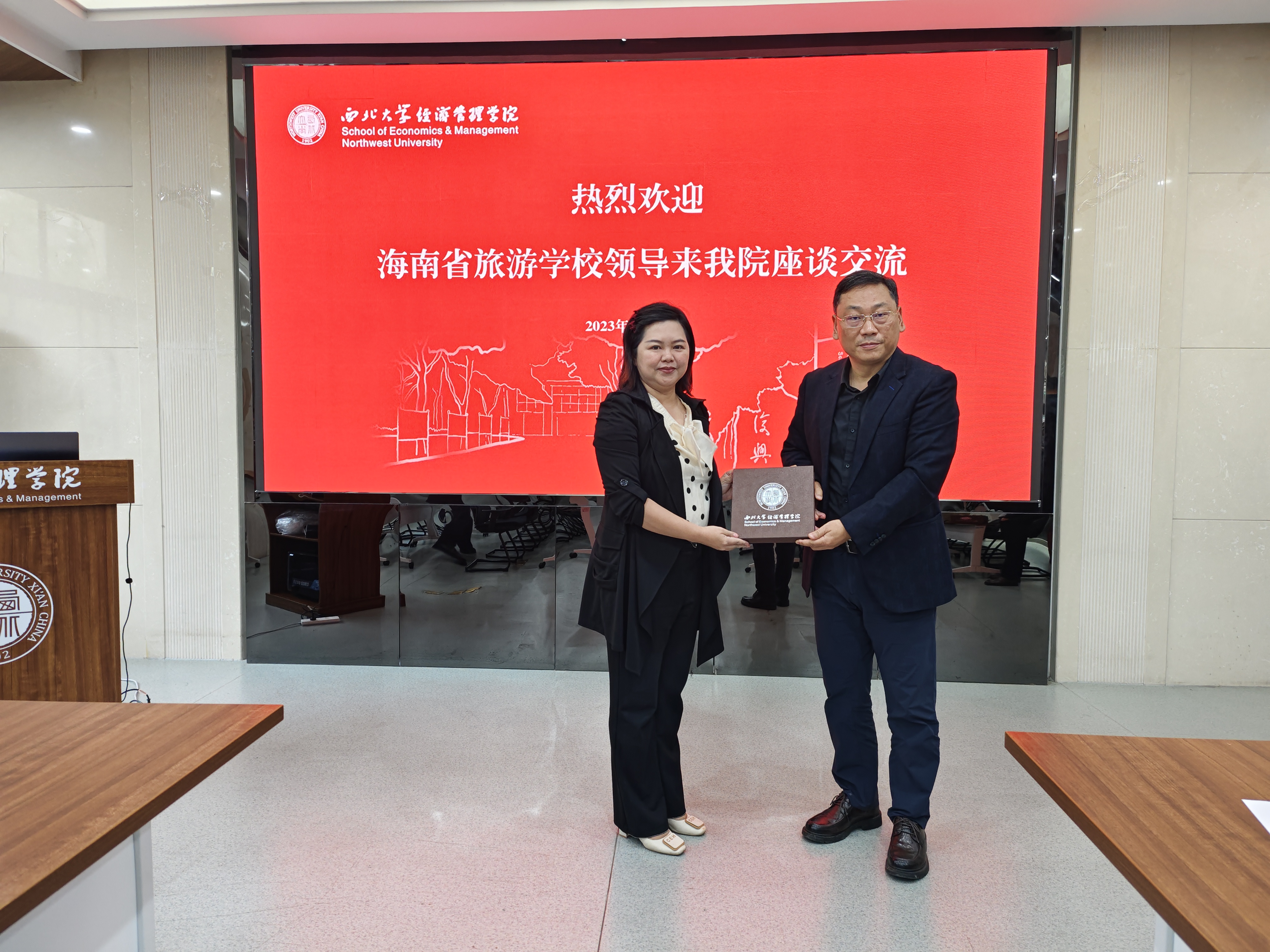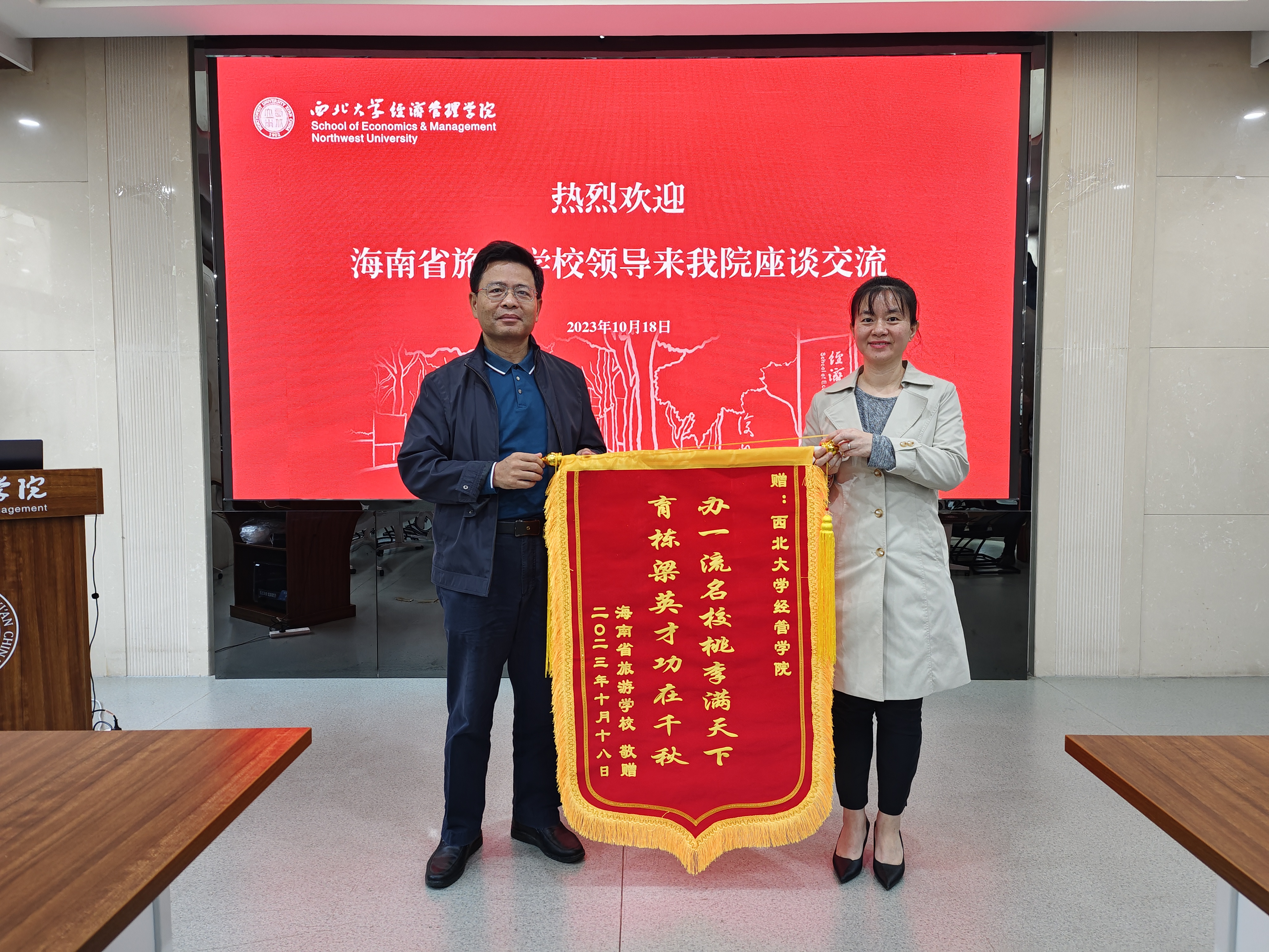 马莉莉院长介绍了永利yl23411no1发展历程、学科建设、专业设置、师资队伍、人才培养、科研和教学平台建设等方面的发展概况和取得的成果。她提到,旅游管理专业是经管学院的传统专业之一,40余年来培养了一大批优秀毕业生。她代表学院,向海南省旅游学校给予何燕发展平台和机会,表示衷心的感谢。