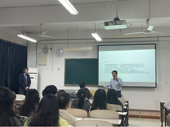 讲座开始前,马莉莉教授向大家介绍了刘迪教授的学术背景与成就,并对他的到来表示欢迎与感谢。刘迪教授于中国社会科学院大学取得硕士学位、早稻田大学取得博士学位,曾任人民日报国际部编辑、早稻田大学外籍研究员,撰有《现代西方新闻法制概述》《近代中国联邦主义思想》《三味日本》《中国商业新常识》等著作,主要研究方向为现代日本政治、现代中国政治、中日关系与政治经济学。