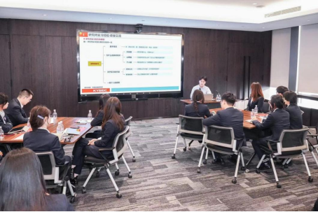 简单参观之后,人力资源部副总经理权学标介绍了公司上海区域基本情况和公司未来主要的战略发展方向,就学员们未来的职业发展道路展开深入交流。随后,研究所有色金属首席分析师李怡然以券商研究所研究内容为主题和学员们分享了自己的观点,研究所化工组徐正凤介绍了个人对实习工作的看法,强调合规和勤奋在就业中的重要性,入职研究所、一期实验班优秀学员王镇涛与学员们分享了自己的研究所实习经验和个人感悟,和学员们展开亲切交流。