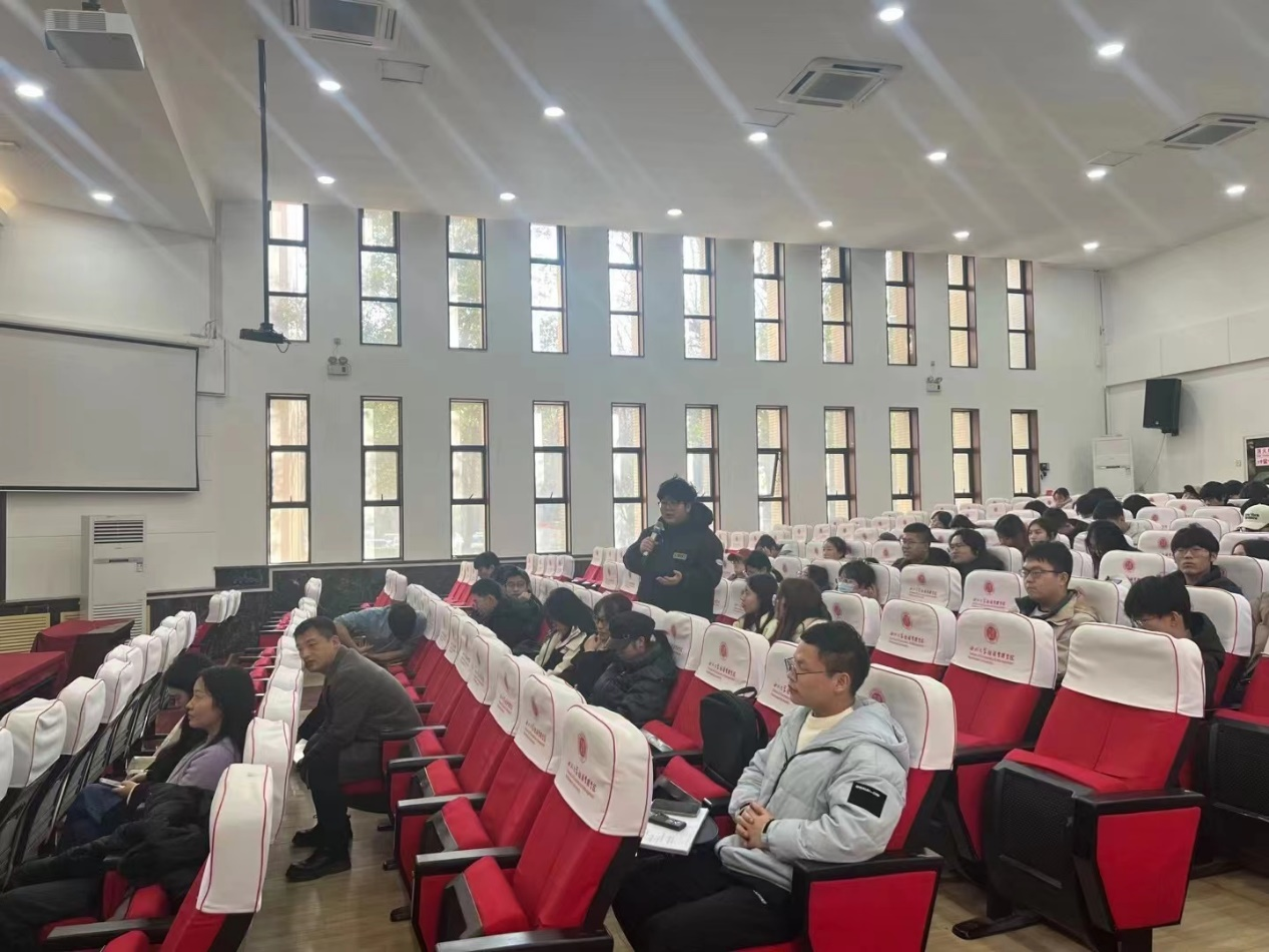 第一场讲座邀请了神州数码集团的高级三维设计师尧介绍了数字栾生可视化技术,他分享了数字孪生项目从售前、开发实施工具到最后落地的重要步骤及注意事项,介绍了神州数码的具体数字孪生项目,并从个人职业能力发展方面与同学们分享终身学习的态度和永不放弃的心态。