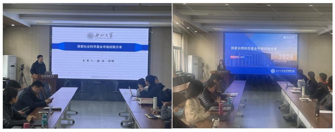 其次,张旺博士和曲博婷博士分别就国家社科基金和国家自科基金的写作经验和申报感悟进行分享。与会老师就基金申报相关问题展开充分交流。