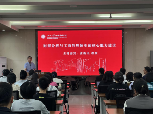 5月23日,对外经济贸易大学原副校长、国际商学院原院长、会计学教授、财政部会计名家、国内会计与财务管理领域权威学者张新民教授做客永利官网“侯外庐学术讲座”第三百六十三讲,为师生作了题为“财报分析与工商管理师生的核心能力建设”的学术讲座。讲座由永利yl23411no1院长马莉莉教授主持,近百名师生参加。