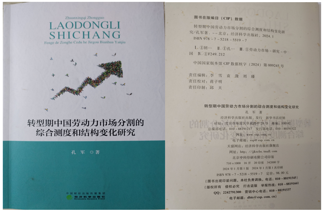 孔军教授的专著《转型期中国劳动力市场分割的综合测度和结构变化研究》近期在经济科学出版社出版,全书共34.2万字。