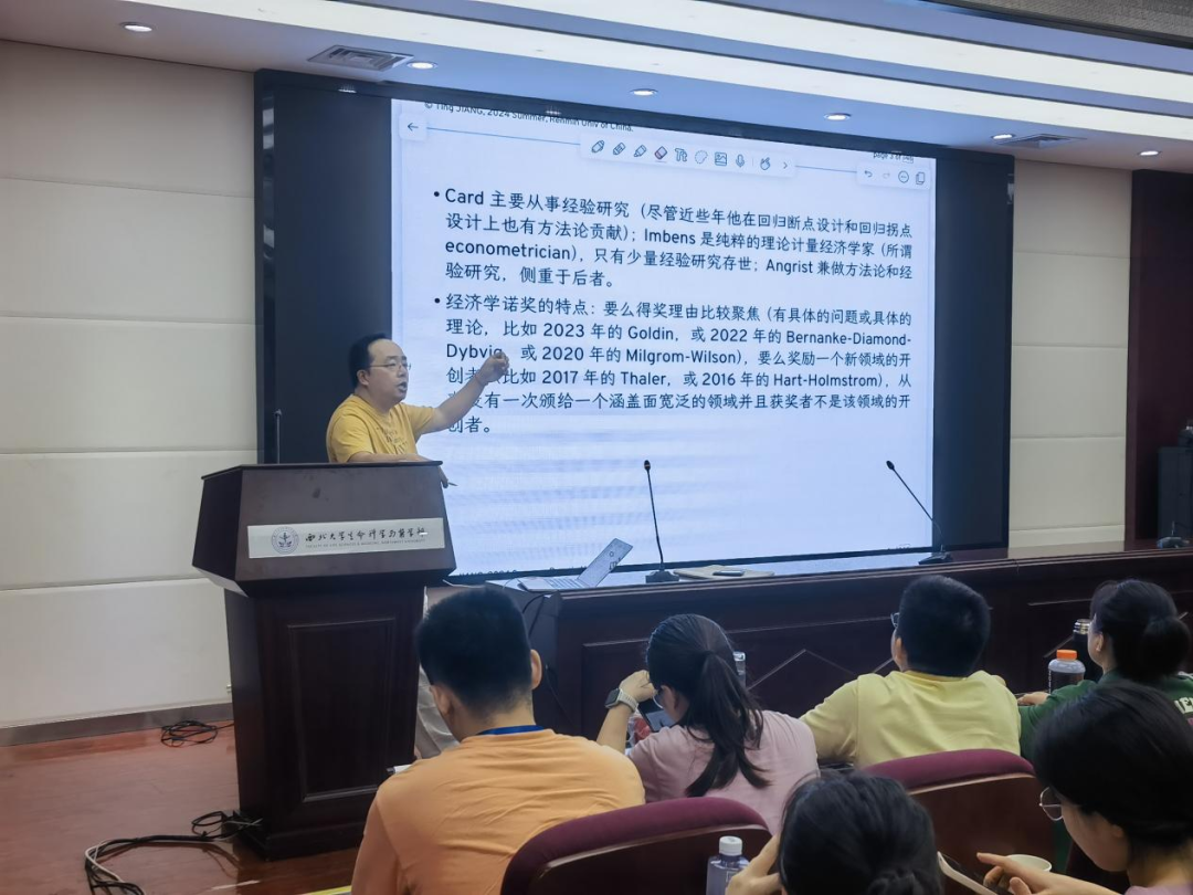 本次暑期学校主要聚焦区域协调发展和中国经济结构型转型问题以及社会科学前沿研究方法展开,共邀请中国人民大学刘瑞明教授、江艇副教授、陈强远副教授、上海对外经贸大学李辉文教授、冯皓教授、复旦大学陈钊教授、奚锡灿副教授、北京大学陆方文教授、王勇教授、刘冲副教授、上海财经大学郭峰教授、西安交通大学帅满教授、中南财经政法大学张子尧副教授等13位专家前来授课,暑期学校全体学员在聆听专家精彩报告的同时就各自感兴趣的问题与主讲嘉宾进行了深入的互动交流。
