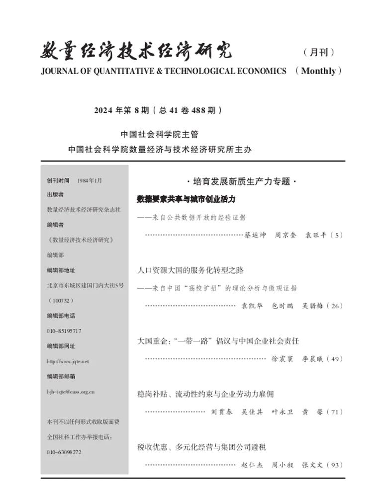 近日,永利官网经济学系赵仁杰副教授作为第一作者的论文《税收优惠、多元化经营与集团公司避税》在权威期刊《数量经济技术经济研究》第8期发表,该文是赵仁杰老师主持的国家自然科学基金项目、陕西高校青年创新团队项目的阶段性成果。