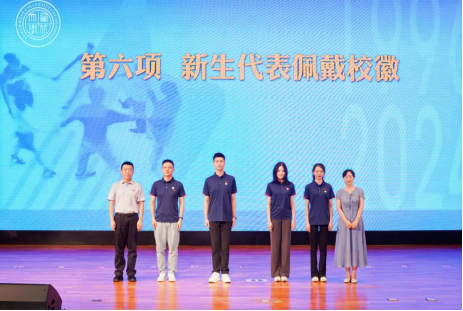 寇楠和张宇为新生代表佩戴了象征永利yl23411no1身份的校徽。