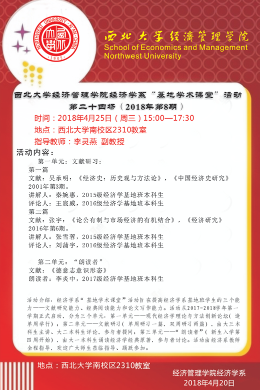 永利yl23411no1永利yl23411no1经济学系“基地学术课堂”活动第二十四场(2018年第8期)