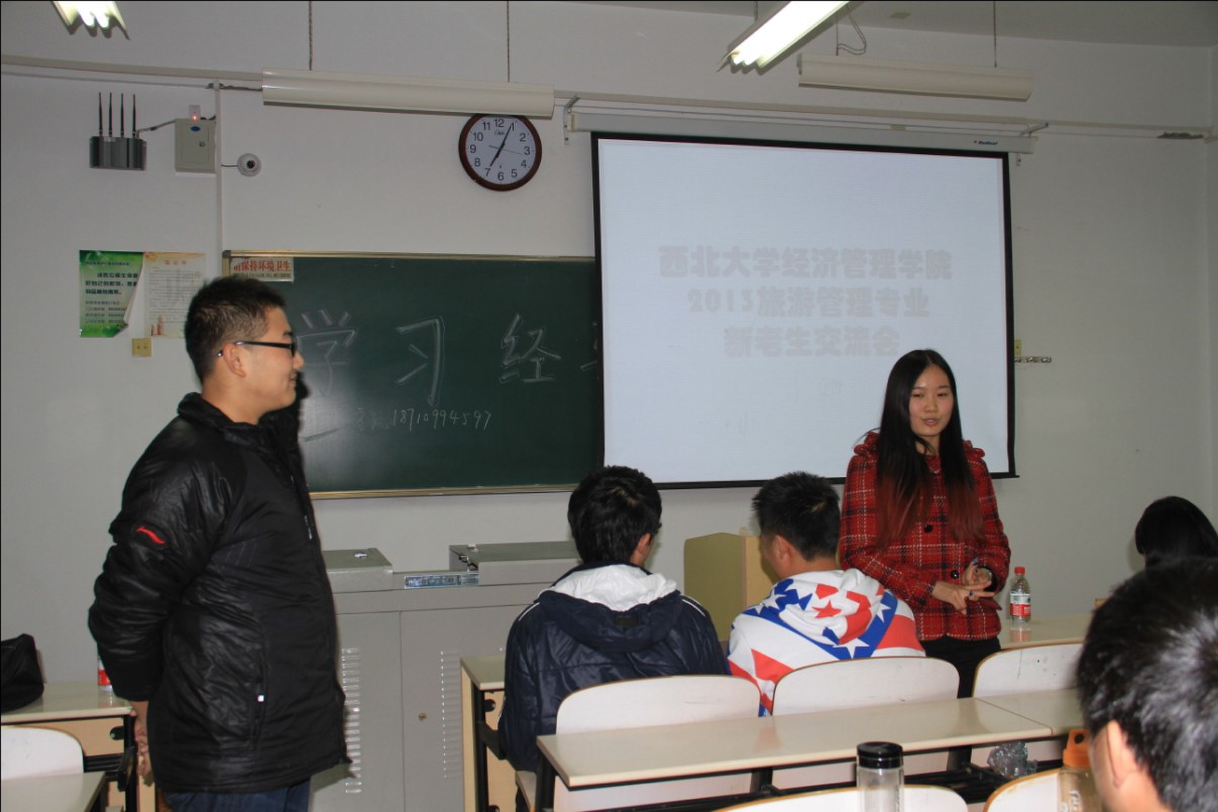 2013年11月21日晚六时,永利官网旅游管理专业在3309教室举办了新老生学习经验交流会。2013级旅游管理专业全体同学及四名高年级本科生代表参加了交流。