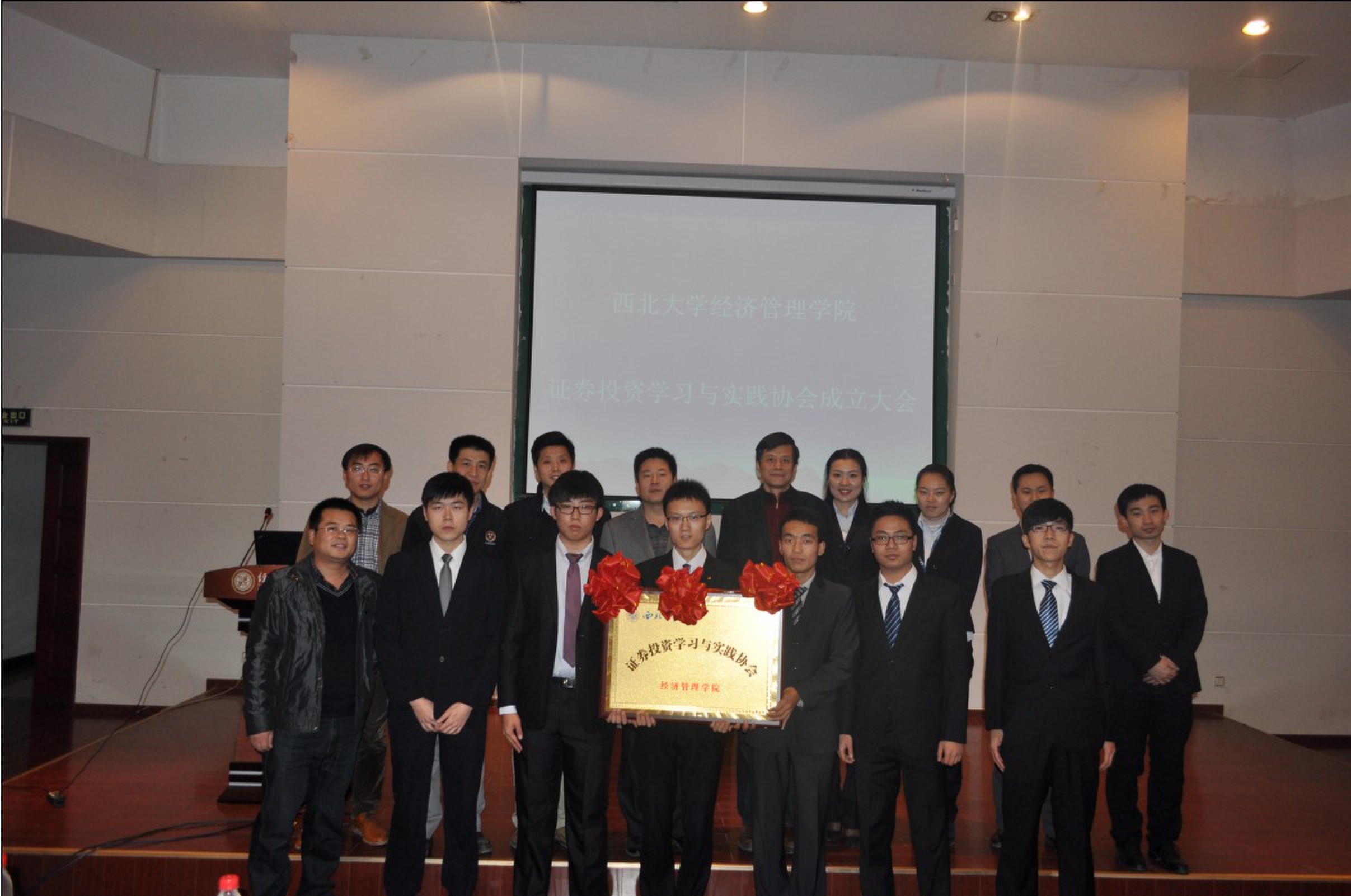 会上,院团委负责人宣读了协会组织机构和相关负责人名单;协会负责人介绍了组建协会的目的和发展设想;协会的长期赞助单位领导,国泰君安西北分公司鲁南总经理表示将加强与协会的合作,为协会今后的发展提供更多的机会和平台;最后,李一凡副书记对协会的成立表示了祝贺,对协会今后的发展提出了几点希望,一是希望协会能依托学院的学科优势、优秀的师资力量,发展成为学生交流学术和提高投资实践技能的平台,二是希望协会能够为更多学生普及证券投资知识,树立正确的投资理念提供帮助,发展成为同学服务的公益平台;三是希望协会创新发展,争取通过两三年的实践摸索,创建出品牌活动,为丰富校园文化活动,提高学生综合素养,开辟第二课堂贡献力量。