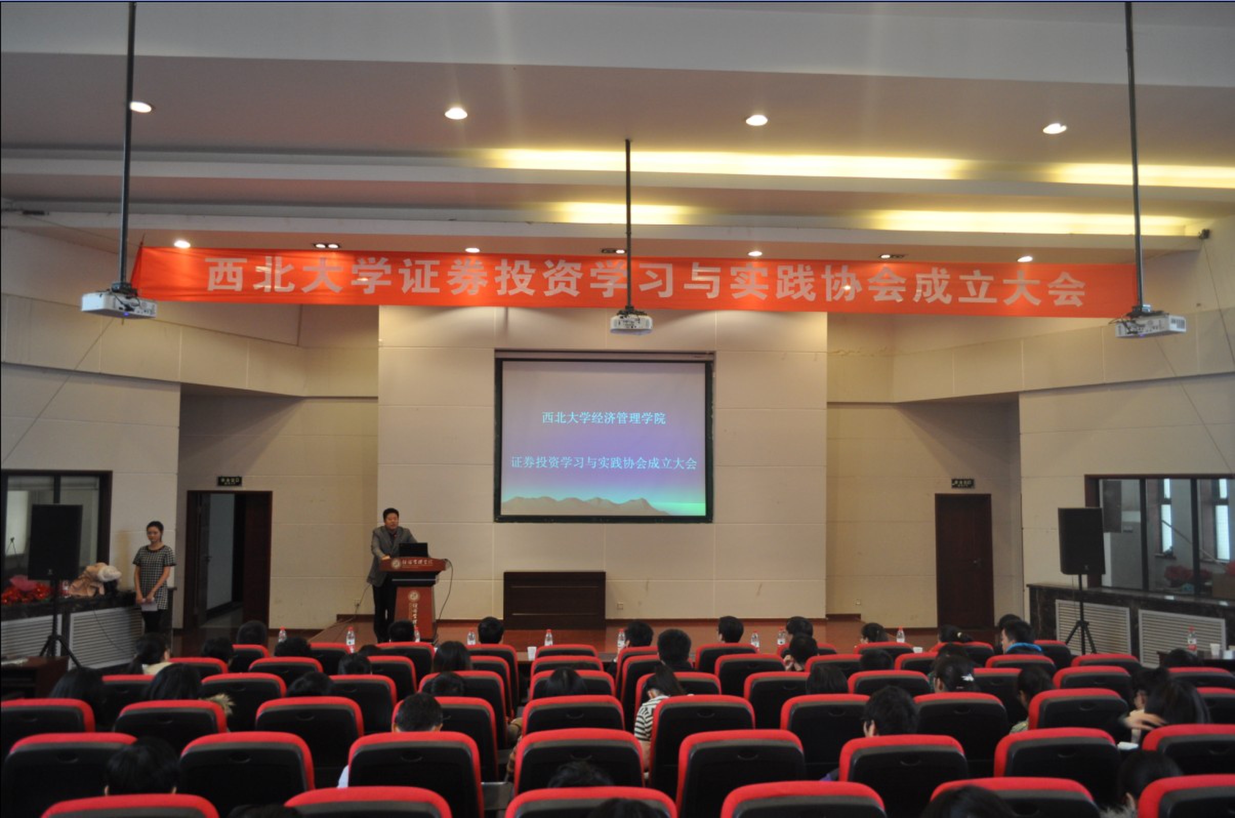 11月13日下午,永利yl23411no1证券投资实习与实践协会成立大会在金海恒业报告厅举行。国泰君安西北分公司总经理鲁南先生、院党委副书记李一凡老师、经济系副主任刘瑞明副教授出席,院团委老师和二百多名学生参加了大会。