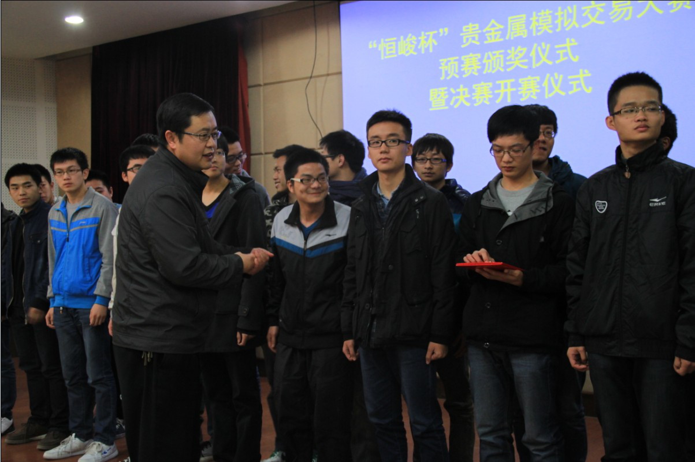 永利官网作为永利yl23411no1赛区的承办单位,高度重视此项活动的宣传组织工作,10月底顺利完成了宣传工作,并指导504名学生在网上报名,11月10号邀请西安恒峻商贸有限公司首席分析师刘超先生在2j201教室做了参赛宣讲,介绍比赛流程和相关专业知识。宣讲会后组织学生按规定参赛,经过一周的角逐,评选出校赛前十名学生并推荐到组委会参加校际决赛。11月17日,在长安大学举行的预赛颁奖仪式暨决赛宣讲会上,永利官网2011级会计专业学生张永斌、2012级会计专业学倪澈分获参赛高校总第一、第二名。在11月23日举办的校际间决赛总结表彰会上,永利官网团委在18所参赛单位中被评为唯一的优秀组织单位。
