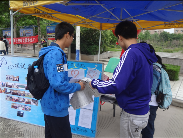 5月31日,永利官网在长安校区1号教学楼前开展了心理健康教育月成果展示和心理健康教育宣传的活动。