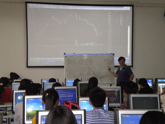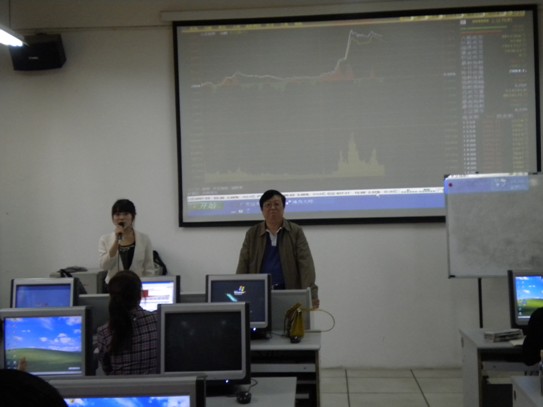 韦老师向同学们讲授了证券基础知识以及网上模拟交易的方法,系统的介绍了影响股票波动的七大因素(经济、政治、自然、文化、行业、市场、公司)以及股票操作技术层面常用的技术指标(K线图、移动平均线、压力线、量比和换手率等等),同时结合现实生活中具体事例分析了这七大因素具体如何影响股价,使抽象的金融知识变得栩栩如生,韦老师还通过实际操作使同学们了解如何掌握股票投资时机。活动的最后,韦老师就同学们提出的问题逐一耐心地做了解答。