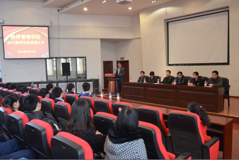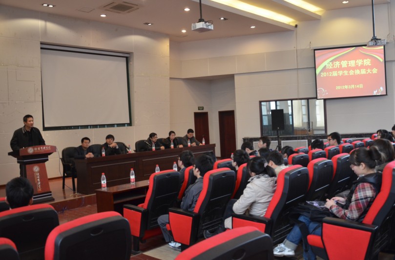 最后王宝书记作了总结讲话。在讲话中王书记主要强调三点:首先对上届学生会的工作表示了肯定和感谢,对当选新一届学生会的干部表示了祝贺;第二对新一届学生会提出一点希望:期望学生会能够协助学院老师一起不断提高学院的素质教育水平,增强学生的综合素养和创新能力,最终建立与经管学院学术品牌相匹配的素质教育品牌。一点共勉:要时刻树立满怀热情、服务师生的信念、永远发扬经管学院永争第一的精神;第三将本年度学院党委工作的八条重点做了通报,使学生会可以有的放矢的开展工作。