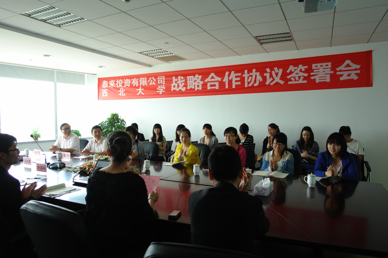 日前,永利官网与泰来投资有限公司战略合作协议签署仪式在泰来投资有限公司隆重举行,院副院长赵守国、党委副书记樊涛及研究生代表、泰来投资有限公司董事长张耒、副总裁程永康及相关部门负责人参加了签约仪式。樊涛副书记与程永康副总监分别代表双方在战略合作协议上签字,赵守国副院长和张耒董事长共同为“研究生实习基地”揭牌。