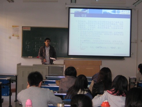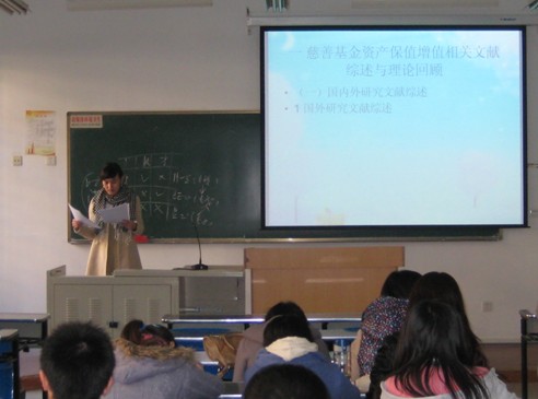 第一场获奖论文报告会于2011年11月8日下午14:30在1103教室举办,报告会由院研究生会学术部部长付晓平主持。报告会邀请09级博士研究生李辉,10级硕士研究生柏银玲、孔凡亮、张强,11级硕士研究生王佳琪就其获奖论文作报告。柏银玲同学以《农耕地改革中农民的“双保障”制度》为主题第一个为大家做了报告,她通过构建理论模型分析了选择“双保障”制度改革之路的必然性与必要性,为大家进行学术研究提供了一条新的思路。李辉博士报告题为《董事会治理与公司业绩的跨期关系研究》,他运用GMM估计考察了董事会治理与公司业绩之间的跨期关系,得出了董事会改革应以创造良好的激励与约束环境为重点的结论。王佳琪同学作了题为《中国慈善基金资产保值增值途径研究》的报告,在借鉴国外慈善基金资产保值增值方法的基础上,针对中国实际情况提出了对策建议。孔凡亮同学以《中国与东亚主要贸易伙伴双边贸易成本的测度与分析》为题,在对国内外相关理论进行综述的基础上,运用引力模型对中国与东亚主要贸易伙伴的双边贸易成本进行了具体的测度与分析。张强同学研究的是《李约瑟之谜》,结合历史知识,全方位讲述了“李约瑟之谜”,并提出了自己的看法,指出了其存在的缺陷与不足。